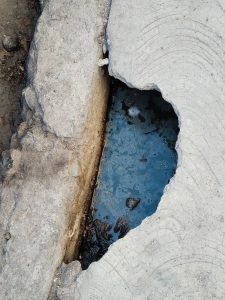 A esto se suma un nuevo hoyo en la banqueta, justo frente a su domicilio, que evidencia el deterioro progresivo del subsuelo derivado del colapso sanitario.