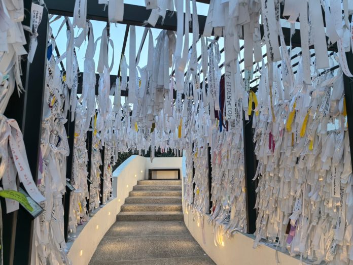 “Los listones blancos se amarran con las peticiones que la gente escribe desde su corazón, confiando en que la Virgen interceda por ellos ante Jesús y Dios Padre. Cuando la persona siente que su petición ha sido escuchada y resuelta, entonces regresa y amarra un listón de cualquier otro color en agradecimiento. Por eso es que vemos tantos listones, porque representan historias, fe y gratitud.”