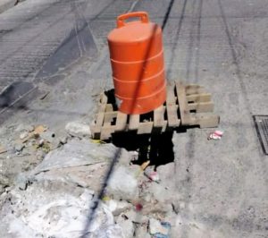 Sin embargo, al día 2 de abril, la situación no solo persiste, sino que ha empeorado. El socavón continúa abierto y únicamente cuenta con señalamientos improvisados, como tablas de madera y un bote de plástico, colocados por los propios habitantes para evitar accidentes.