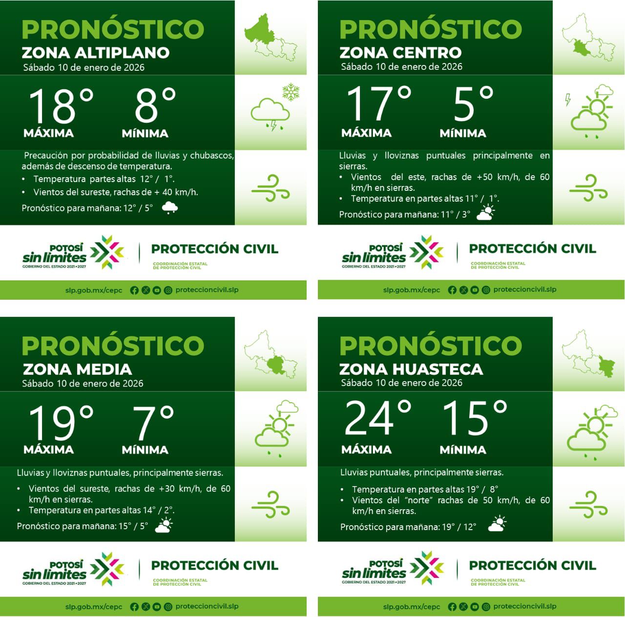 ☀️Temperaturas Máximas: De 17º en zona centro, de 24° en zona huasteca